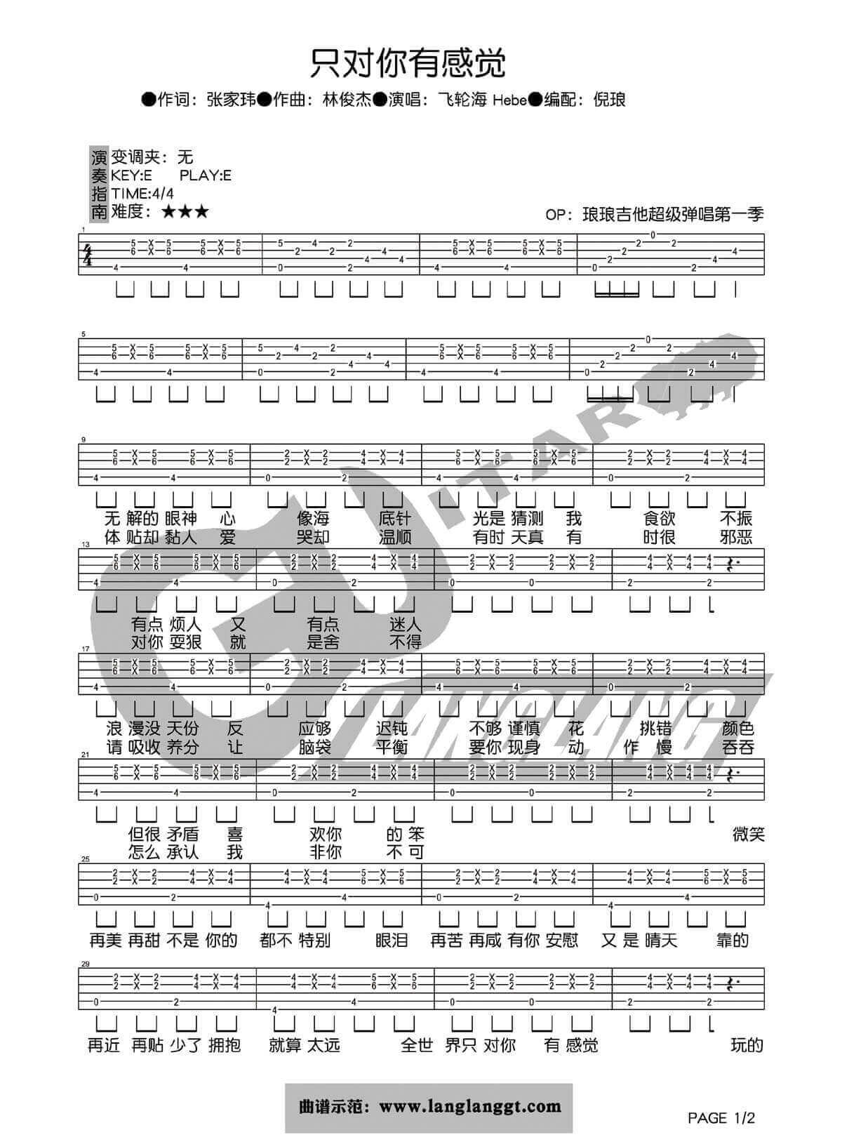 《飞轮海《只对你有感觉吉他谱》(D调)》内容来自于互联网,不能保证内容的准确性与完整性,仅供学习交流欣赏,请勿用于其它用途,内容版权归原作者及来源网站所有,如有侵犯到您的权益请来信告知,我们将及时删除。