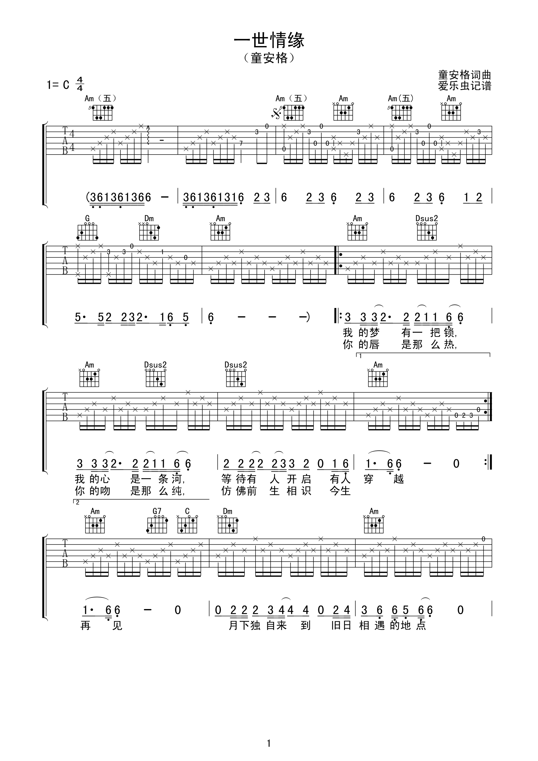 《童安格《一世情缘吉他谱》(C调)》内容来自于互联网,不能保证内容的准确性与完整性,仅供学习交流欣赏,请勿用于其它用途,内容版权归原作者及来源网站所有,如有侵犯到您的权益请来信告知,我们将及时删除。