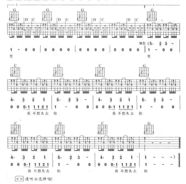 《新裤子《不想失去你吉他谱》(G调)》内容来自于互联网,不能保证内容的准确性与完整性,仅供学习交流欣赏,请勿用于其它用途,内容版权归原作者及来源网站所有,如有侵犯到您的权益请来信告知,我们将及时删除。