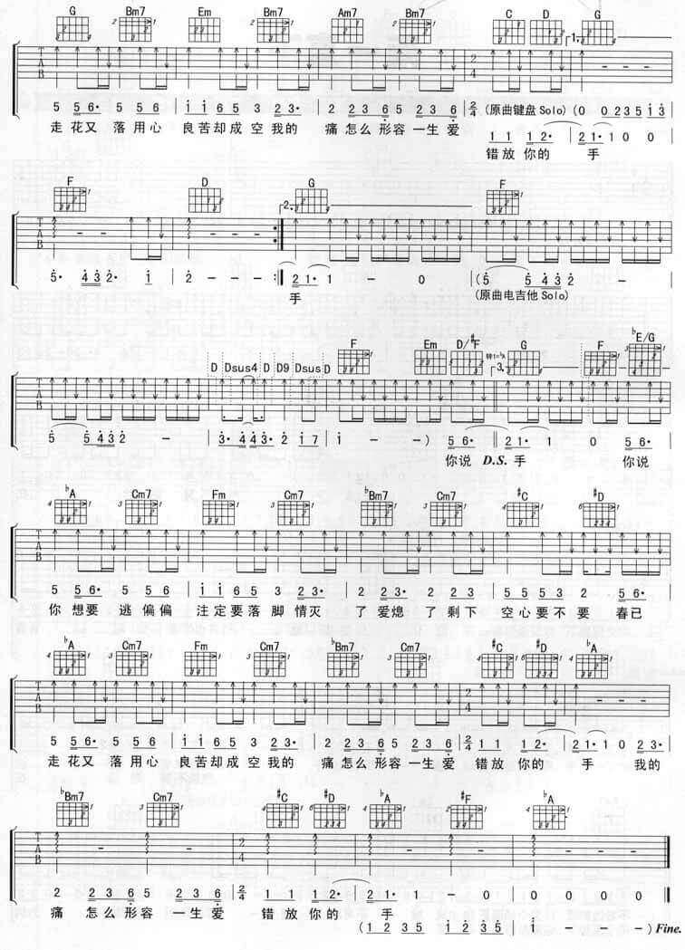 《张宇《用心良苦吉他谱》(G调)》内容来自于互联网,不能保证内容的准确性与完整性,仅供学习交流欣赏,请勿用于其它用途,内容版权归原作者及来源网站所有,如有侵犯到您的权益请来信告知,我们将及时删除。