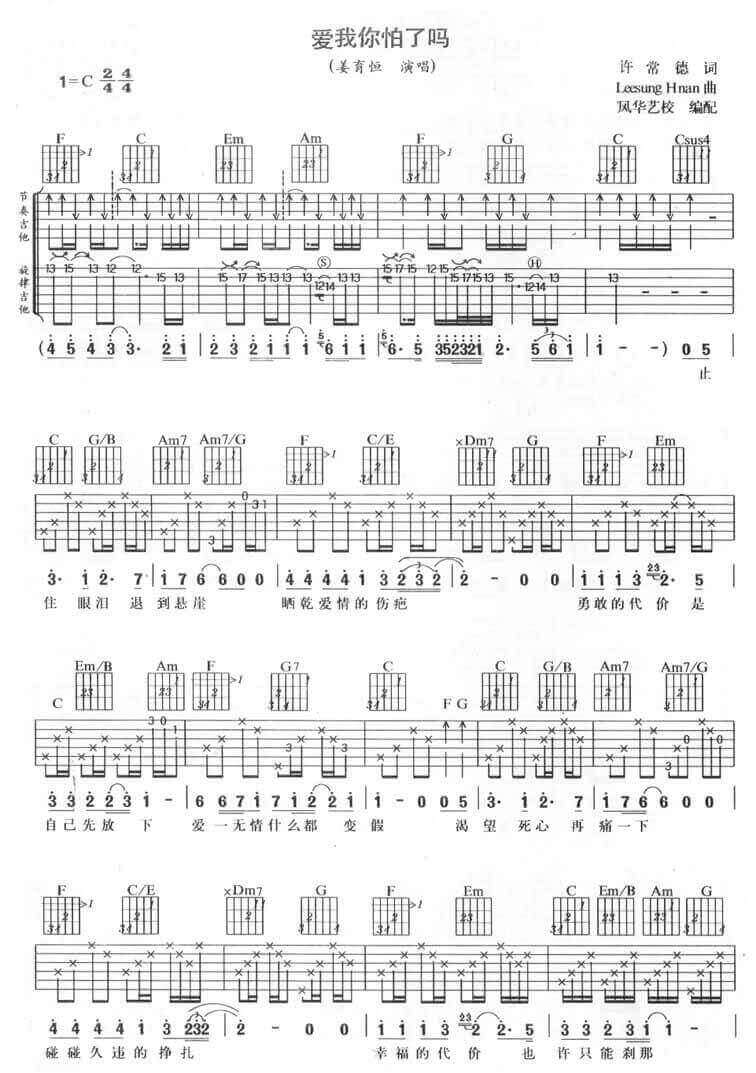 《姜育恒《爱我你怕了吗吉他谱》(C调)》内容来自于互联网,不能保证内容的准确性与完整性,仅供学习交流欣赏,请勿用于其它用途,内容版权归原作者及来源网站所有,如有侵犯到您的权益请来信告知,我们将及时删除。