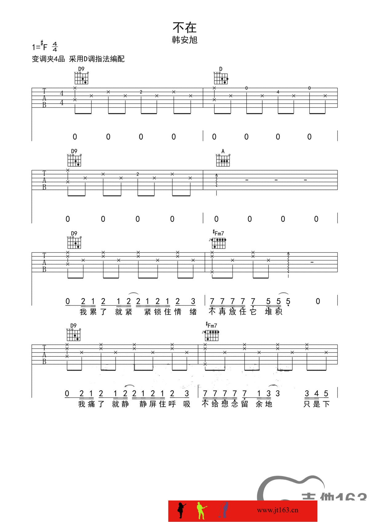 您现在的位置是:首页 > 吉他谱 > 韩安旭《不在吉他谱》(F调) 韩安旭《不在吉他谱》(F调) 日期:2024-04-21 20:30:02 韩安旭 这首歌曲采用了F调的吉他编曲,由吉他163制作完成。这首歌曲充满感动,是一首让人陶醉的音乐。特别推荐海底吉他谱,它旋律优美动听,不容错过!快来学习吧,别犹豫了!