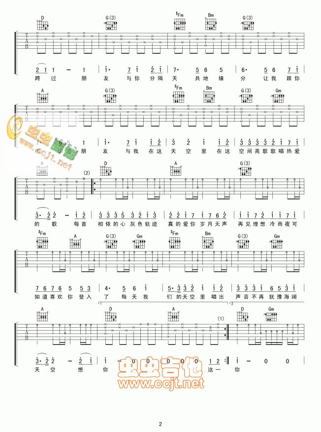 《虫虫《我们的天空吉他谱》(D调)》内容来自于互联网,不能保证内容的准确性与完整性,仅供学习交流欣赏,请勿用于其它用途,内容版权归原作者及来源网站所有,如有侵犯到您的权益请来信告知,我们将及时删除。