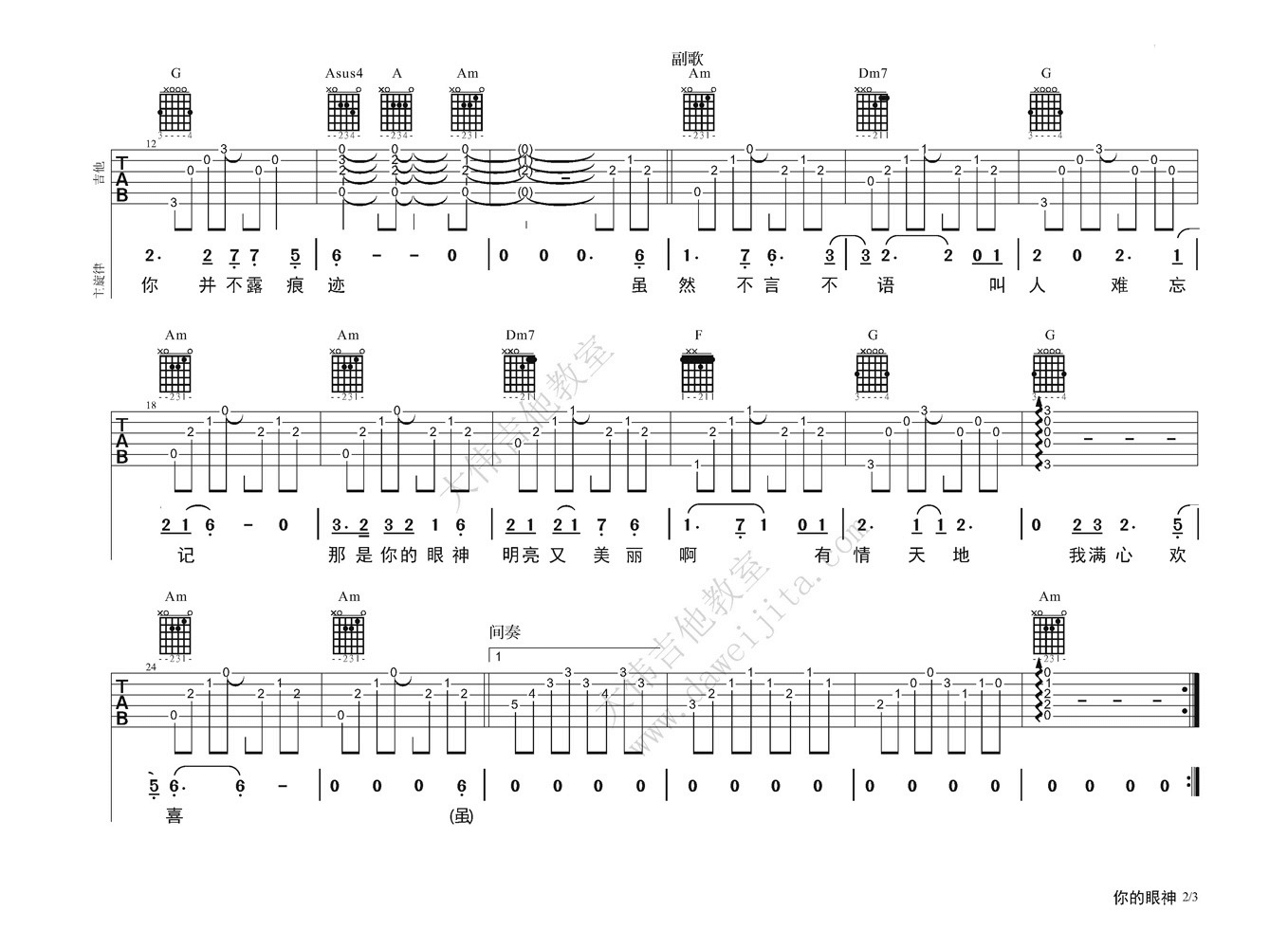 《蔡琴《你的眼神吉他谱》(C调)》内容来自于互联网,不能保证内容的准确性与完整性,仅供学习交流欣赏,请勿用于其它用途,内容版权归原作者及来源网站所有,如有侵犯到您的权益请来信告知,我们将及时删除。