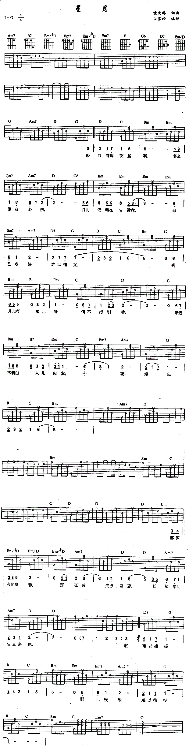 《童安格《星月吉他谱》(G调)》内容来自于互联网,不能保证内容的准确性与完整性,仅供学习交流欣赏,请勿用于其它用途,内容版权归原作者及来源网站所有,如有侵犯到您的权益请来信告知,我们将及时删除。