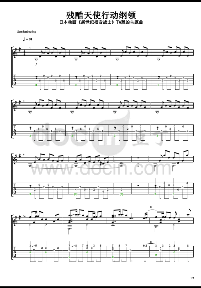 《残酷天使的行动纲领吉他谱》