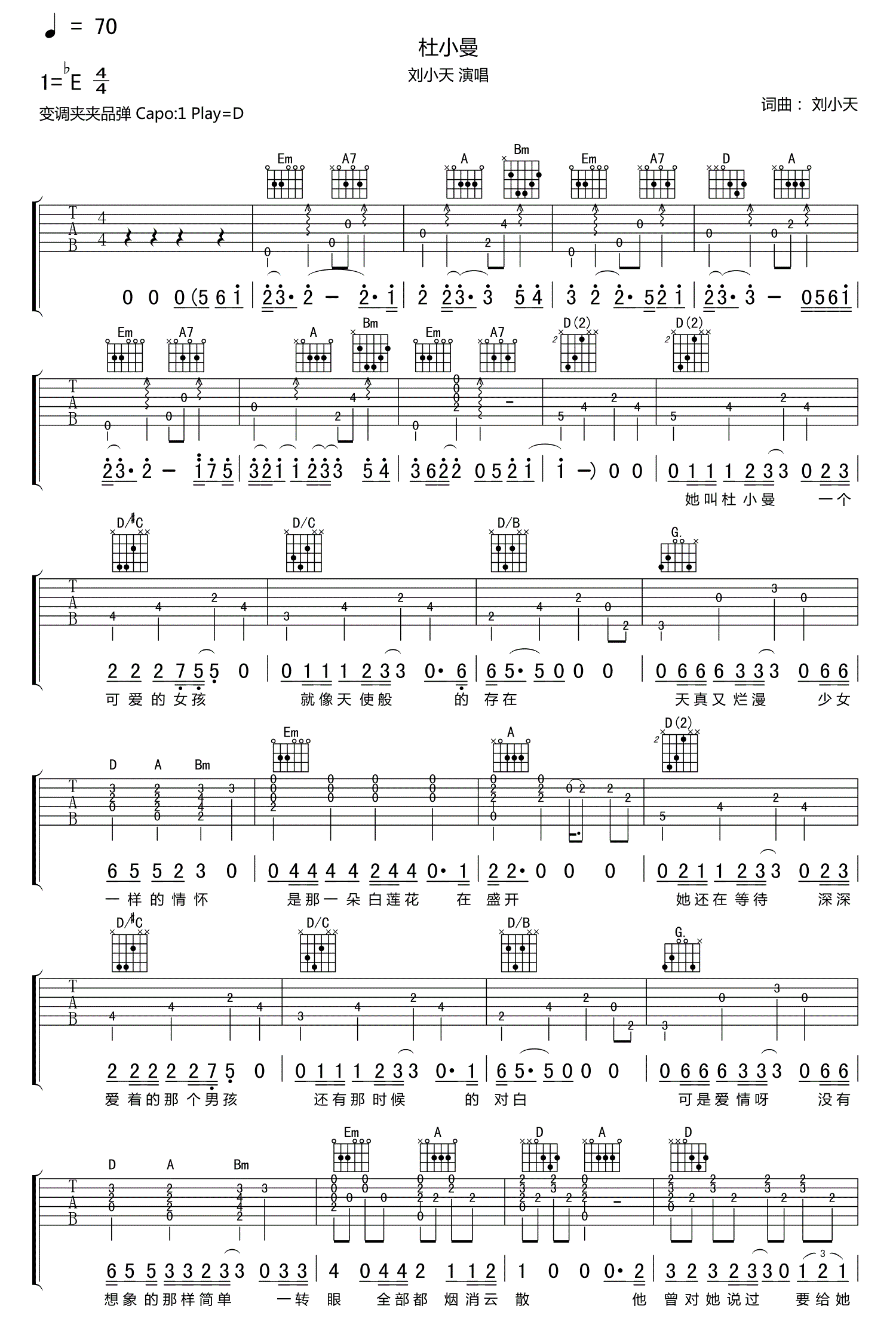 《小曼《杜 刘小天 D调吉他谱》(D调)》内容来自于互联网,不能保证内容的准确性与完整性,仅供学习交流欣赏,请勿用于其它用途,内容版权归原作者及来源网站所有,如有侵犯到您的权益请来信告知,我们将及时删除。