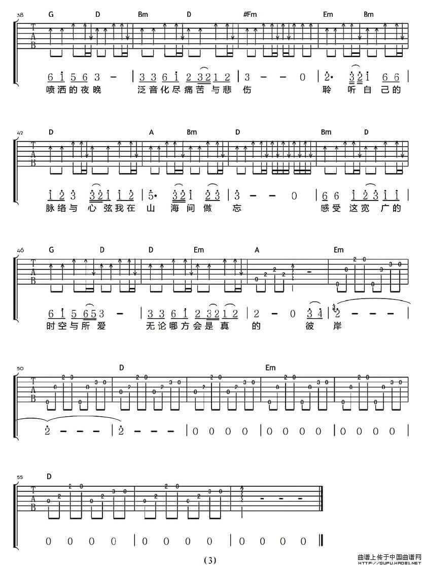 《《山海间吉他谱》(D调)》内容来自于互联网,不能保证内容的准确性与完整性,仅供学习交流欣赏,请勿用于其它用途,内容版权归原作者及来源网站所有,如有侵犯到您的权益请来信告知,我们将及时删除。