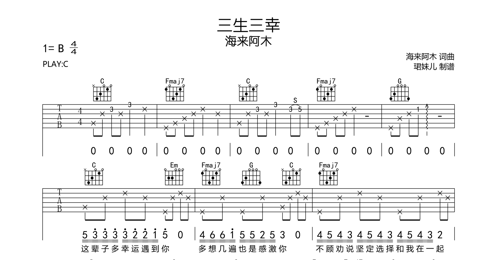 《阿木《三生三幸吉他谱》(C调)》内容来自于互联网,不能保证内容的准确性与完整性,仅供学习交流欣赏,请勿用于其它用途,内容版权归原作者及来源网站所有,如有侵犯到您的权益请来信告知,我们将及时删除。