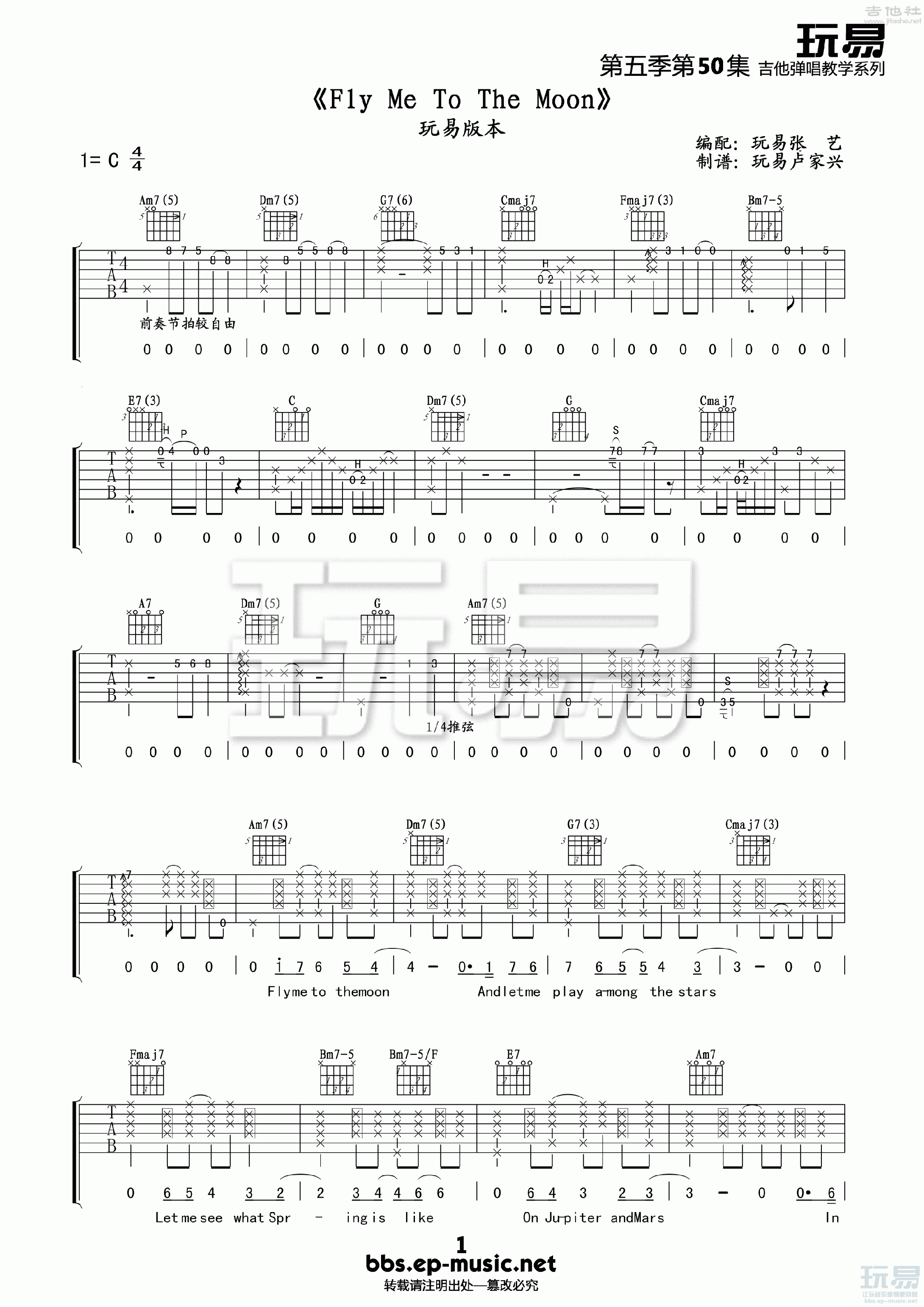 《fly《me to the moon吉他谱》(C调)》内容来自于互联网,不能保证内容的准确性与完整性,仅供学习交流欣赏,请勿用于其它用途,内容版权归原作者及来源网站所有,如有侵犯到您的权益请来信告知,我们将及时删除。