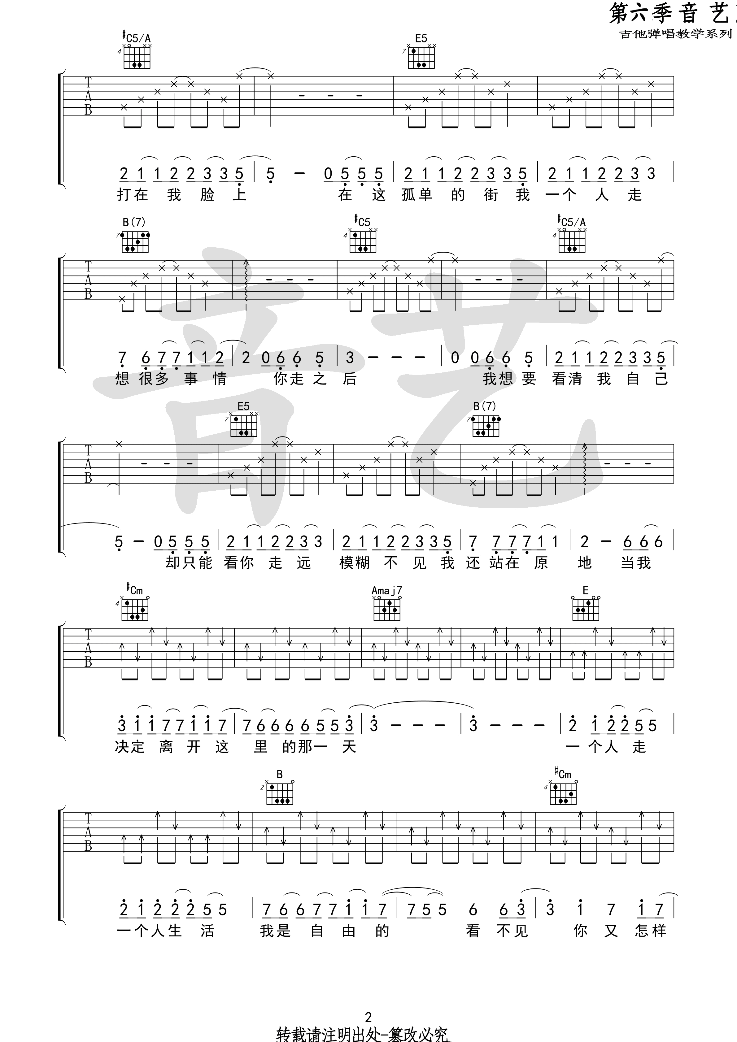这首吉他曲《I Will Miss You》采用了E调指法,是由音艺吉他巧妙编配而成。曲谱旋律极富动感,仿佛在述说一段深情告别。每一个音符都是一段思念的旋律,让人不由得陷入其中。无论是电影中的画面还是吉他的旋律,都让人沉浸在对逝去时光的眷恋之中。这首曲子旋律悠