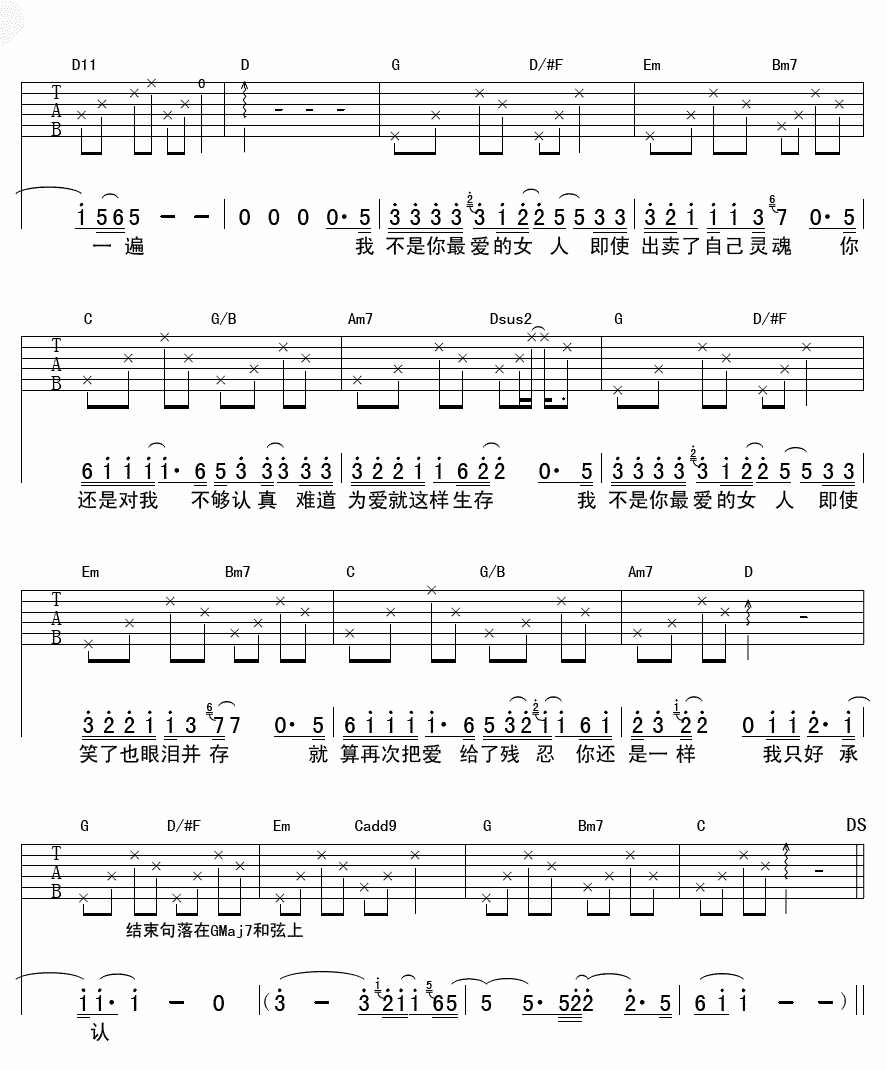《延麟悉心《我不是你最爱的女人吉他谱》(G调)》内容来自于互联网,不能保证内容的准确性与完整性,仅供学习交流欣赏,请勿用于其它用途,内容版权归原作者及来源网站所有,如有侵犯到您的权益请来信告知,我们将及时删除。