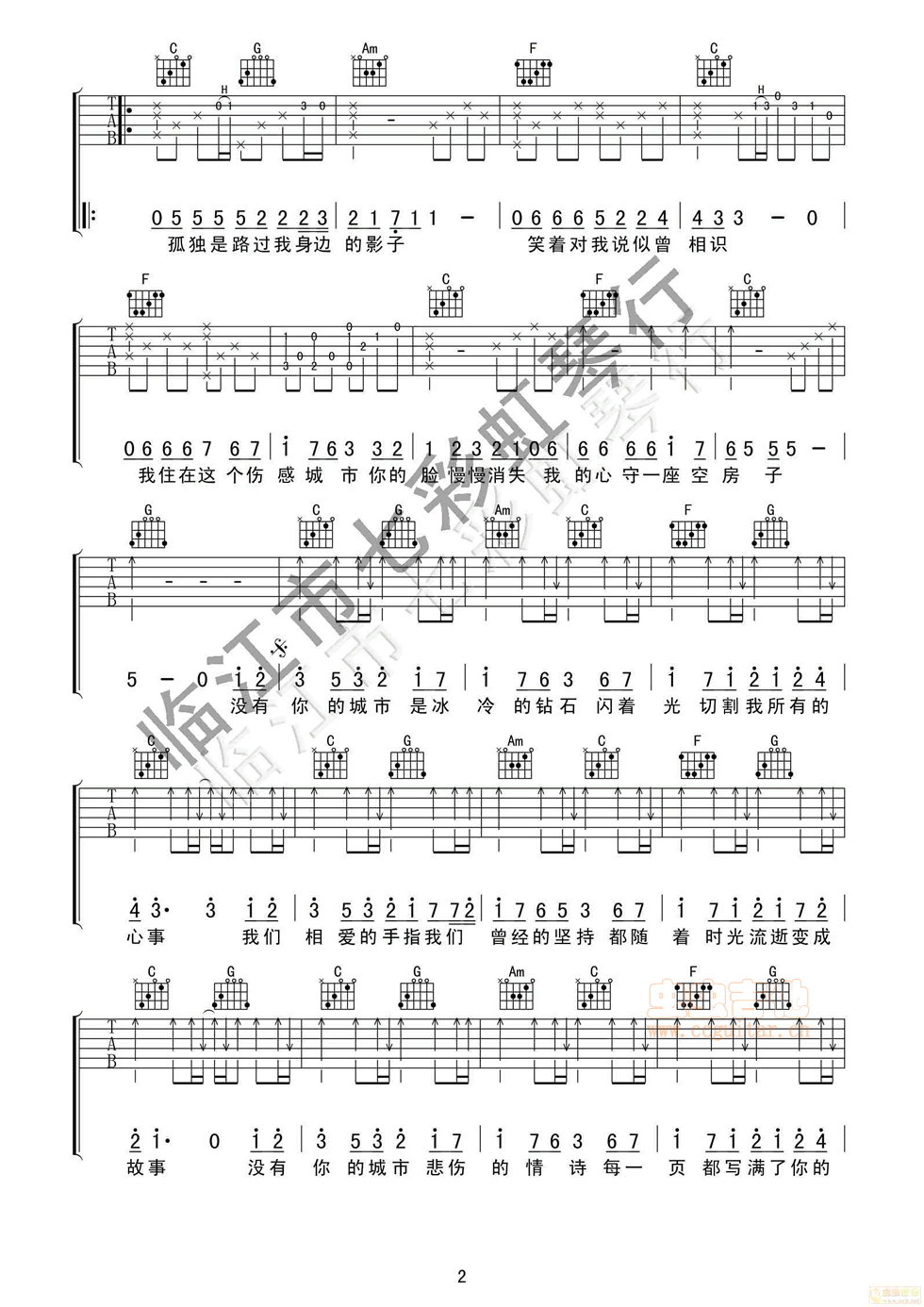 《张远《伤城吉他谱》(C调)》内容来自于互联网,不能保证内容的准确性与完整性,仅供学习交流欣赏,请勿用于其它用途,内容版权归原作者及来源网站所有,如有侵犯到您的权益请来信告知,我们将及时删除。