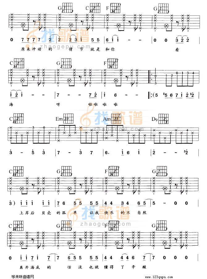 《周迅《看海吉他谱》(G调)》内容来自于互联网,不能保证内容的准确性与完整性,仅供学习交流欣赏,请勿用于其它用途,内容版权归原作者及来源网站所有,如有侵犯到您的权益请来信告知,我们将及时删除。