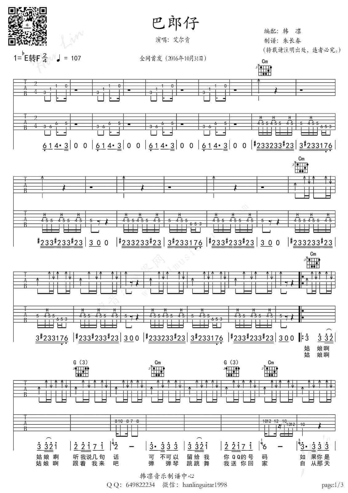 《《巴郎仔吉他谱》(F调)》内容来自于互联网,不能保证内容的准确性与完整性,仅供学习交流欣赏,请勿用于其它用途,内容版权归原作者及来源网站所有,如有侵犯到您的权益请来信告知,我们将及时删除。