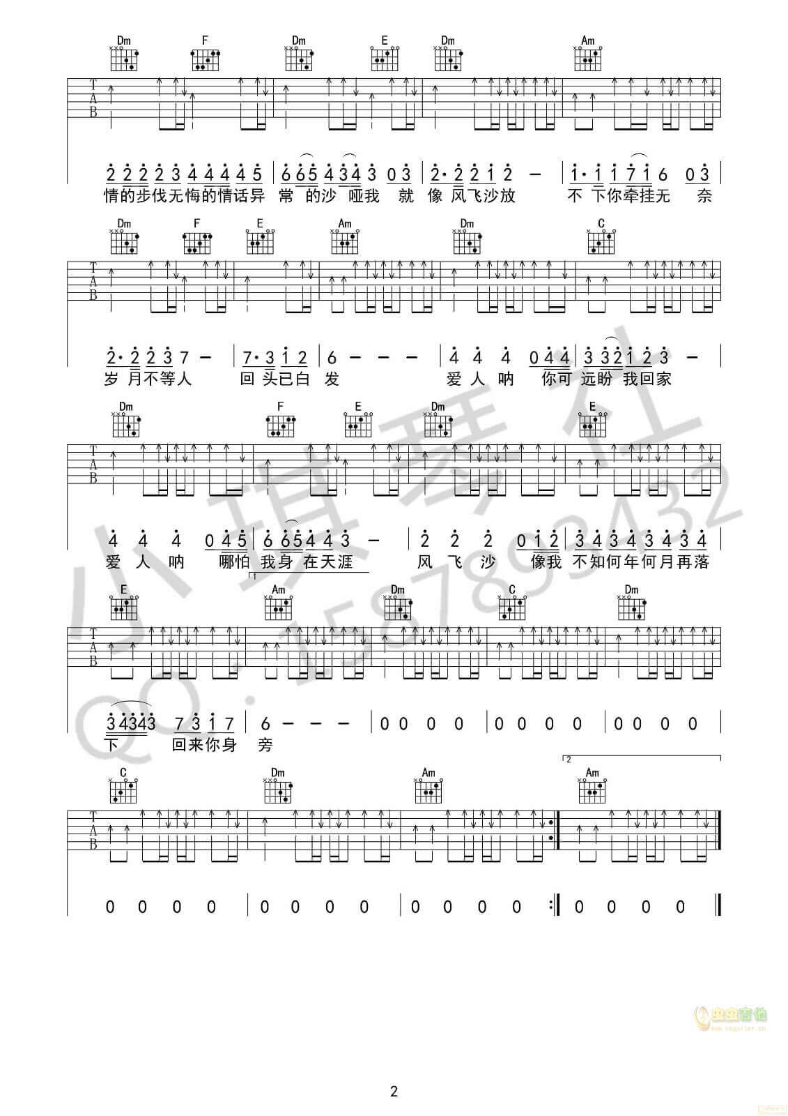 《小琪《风飞沙吉他谱》(C调)》内容来自于互联网,不能保证内容的准确性与完整性,仅供学习交流欣赏,请勿用于其它用途,内容版权归原作者及来源网站所有,如有侵犯到您的权益请来信告知,我们将及时删除。