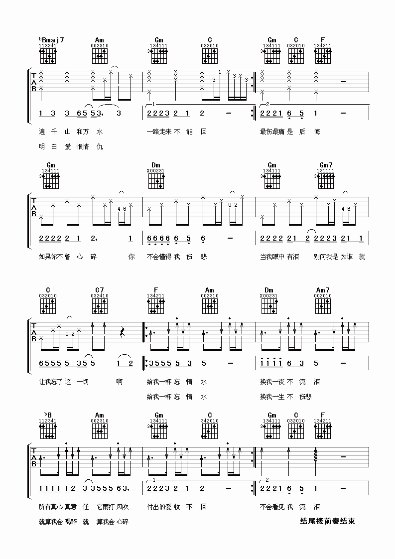 《刘德华《忘情水吉他谱》(F调)》内容来自于互联网,不能保证内容的准确性与完整性,仅供学习交流欣赏,请勿用于其它用途,内容版权归原作者及来源网站所有,如有侵犯到您的权益请来信告知,我们将及时删除。