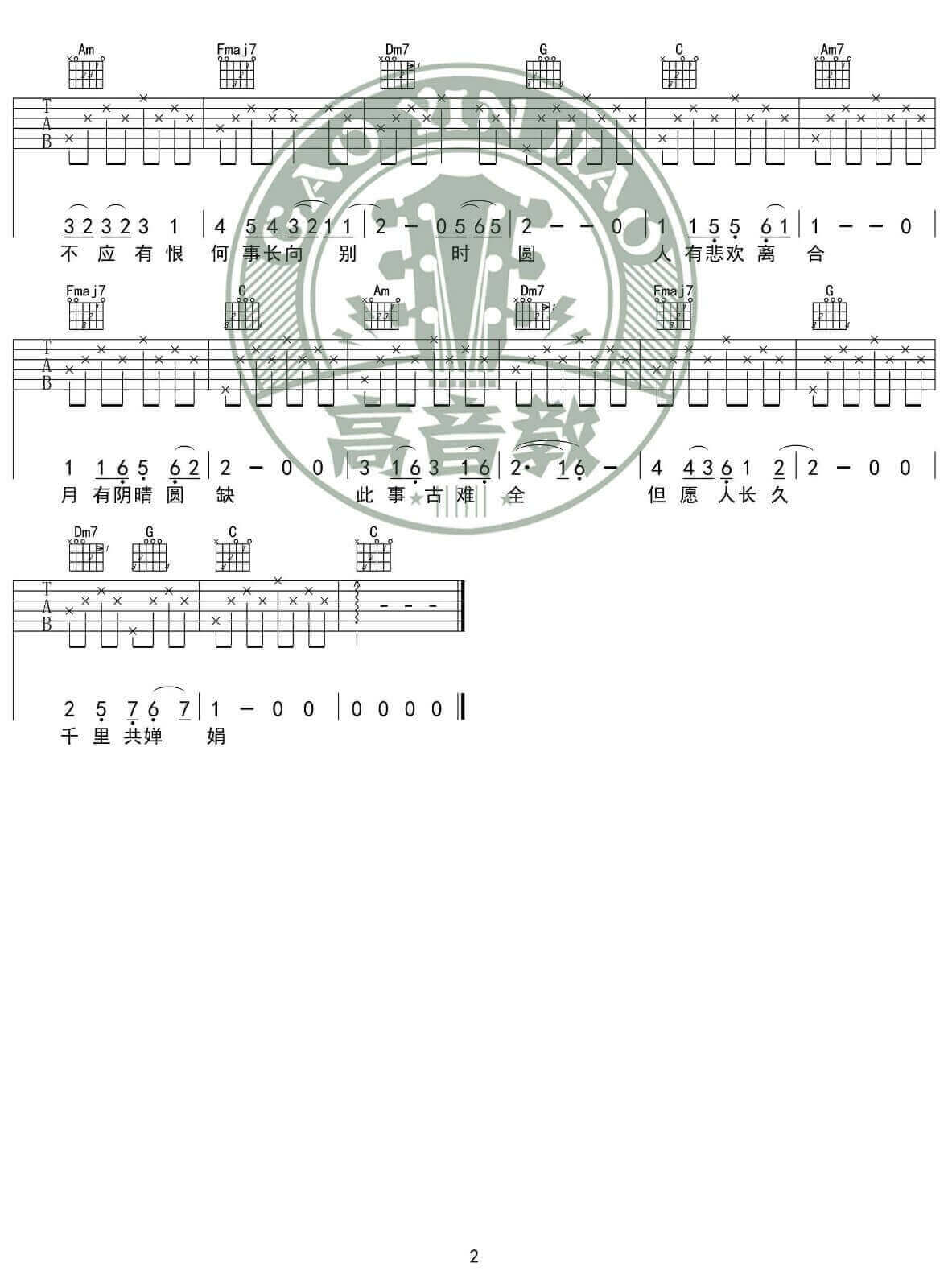 《邓丽君《但愿人长久吉他谱》(C调)》内容来自于互联网,不能保证内容的准确性与完整性,仅供学习交流欣赏,请勿用于其它用途,内容版权归原作者及来源网站所有,如有侵犯到您的权益请来信告知,我们将及时删除。