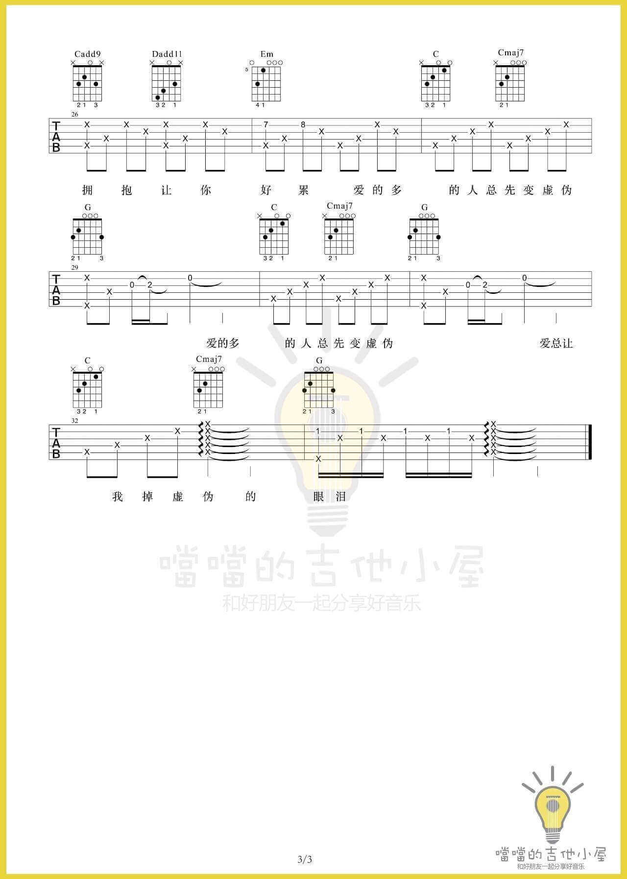 《廖俊涛《谁吉他谱》(G调)》内容来自于互联网,不能保证内容的准确性与完整性,仅供学习交流欣赏,请勿用于其它用途,内容版权归原作者及来源网站所有,如有侵犯到您的权益请来信告知,我们将及时删除。