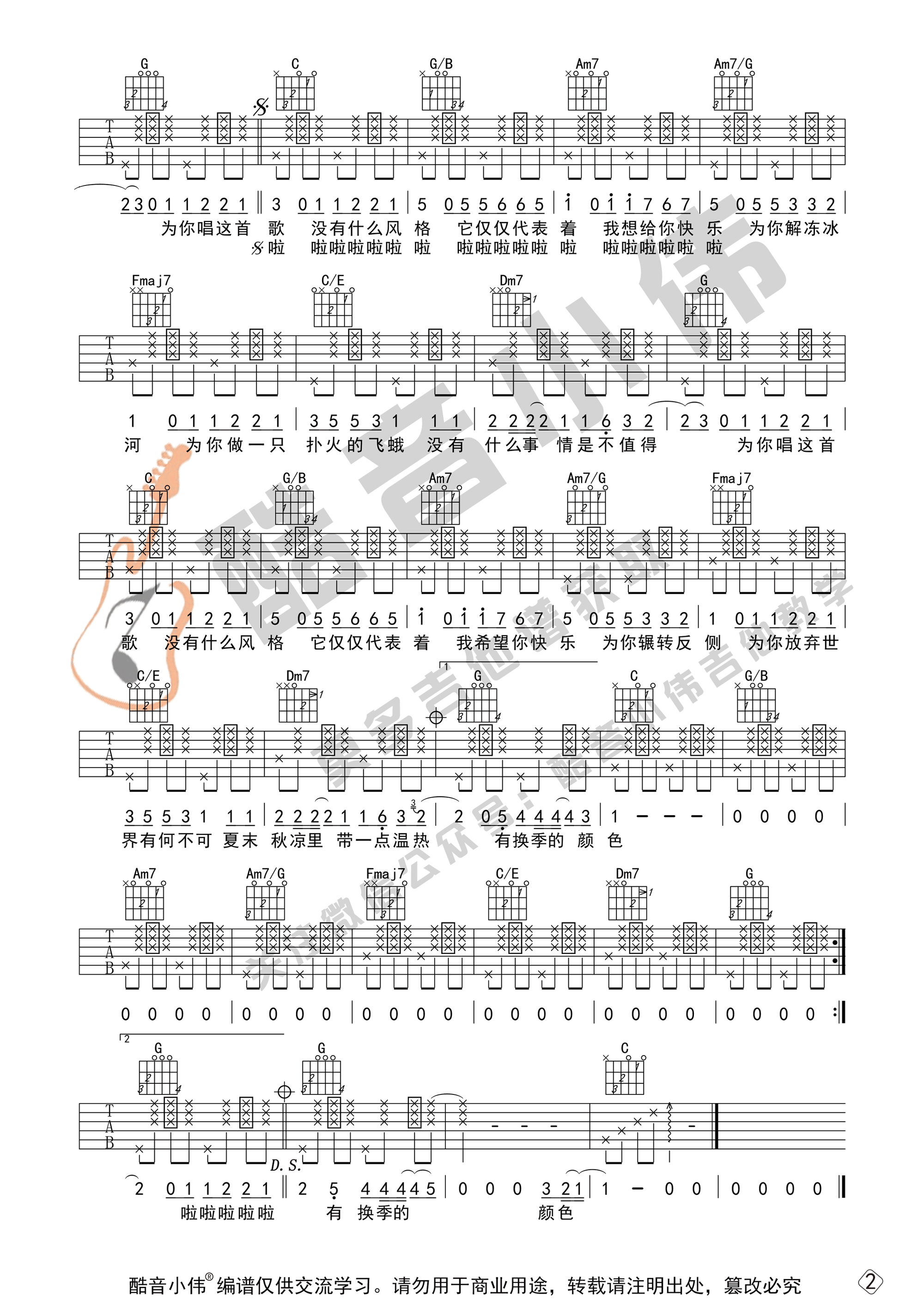 《许嵩《有何不可吉他谱》(C调)》内容来自于互联网,不能保证内容的准确性与完整性,仅供学习交流欣赏,请勿用于其它用途,内容版权归原作者及来源网站所有,如有侵犯到您的权益请来信告知,我们将及时删除。