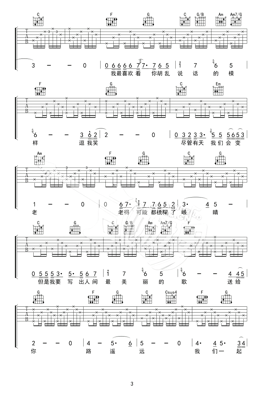《不再让你孤单》吉他谱,是陈升的一首充满回味的情歌。采用C调和弦指法的六线谱,由李建辉编配,总共包含五张弹唱图片谱。这份谱子源自随毅飞扬记谱,以其易唱而备受琴友喜爱。谱中附带了李建辉的吉他弹唱现场版本,为琴友们提供了学习参考。通过分享演奏视频,琴友们能更好地练