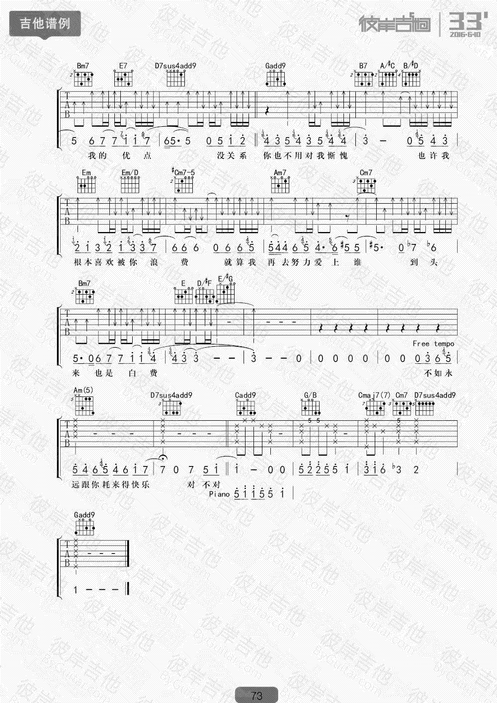 《徐佳莹《浪费吉他谱》》内容来自于互联网,不能保证内容的准确性与完整性,仅供学习交流欣赏,请勿用于其它用途,内容版权归原作者及来源网站所有,如有侵犯到您的权益请来信告知,我们将及时删除。