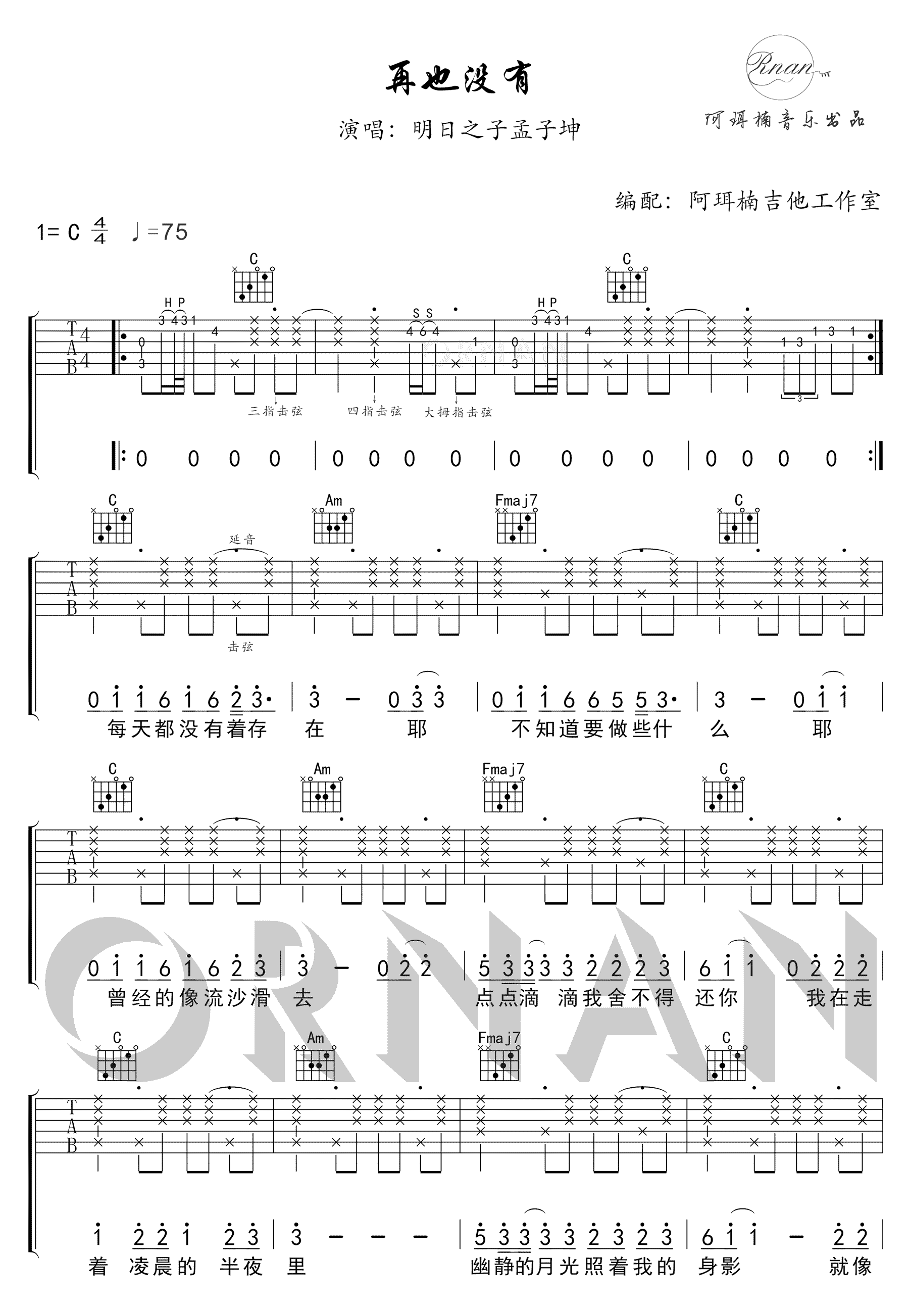 孟子坤《再也没有 明日之子 C调吉他谱》(C调)