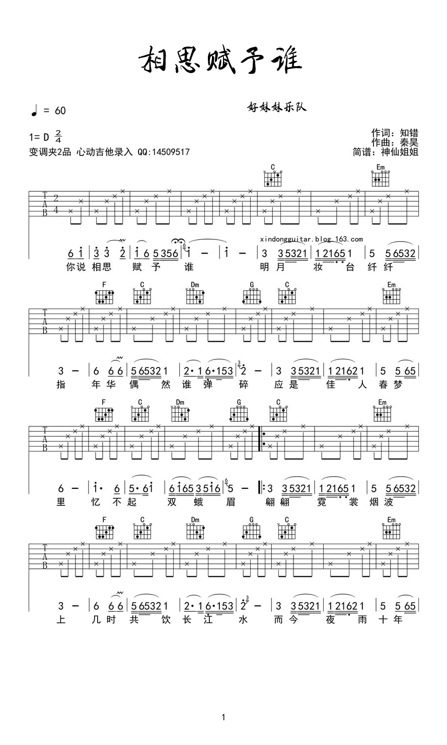 《好妹妹《相思赋予谁吉他谱》》内容来自于互联网,不能保证内容的准确性与完整性,仅供学习交流欣赏,请勿用于其它用途,内容版权归原作者及来源网站所有,如有侵犯到您的权益请来信告知,我们将及时删除。