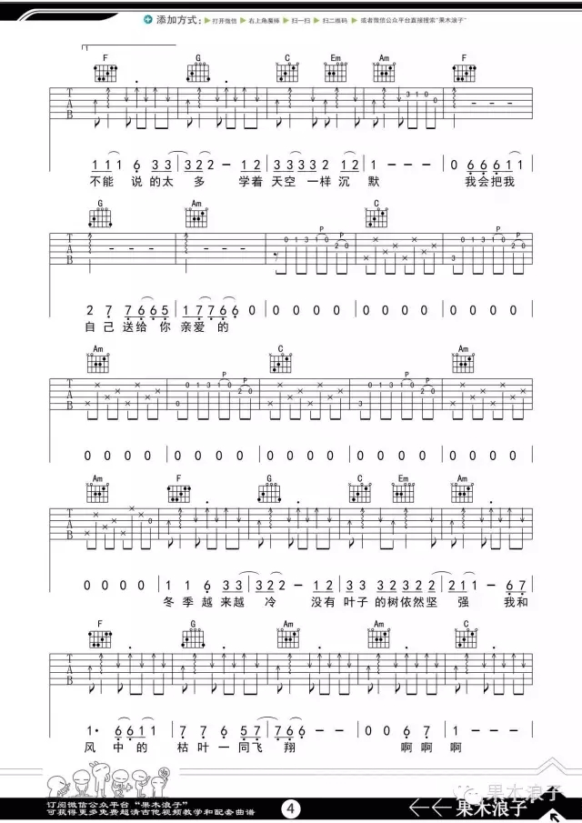 赵雷的民谣歌曲《不开的唇》以不同寻常的吉他曲谱引人注目。六线谱展现在眼前,高清版的图片谱为乐手提供清晰指导。原调D的歌曲,以C调指法呈现,通过变调夹夹在第二品,是果木浪子的编配版本,简单易上手,难度不大。这首歌旋律独特,一听便沉浸其中,轻快的曲调交织着忧伤的歌