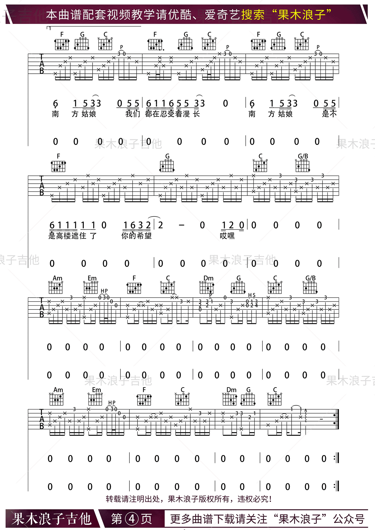 南方姑娘吉他谱,由赵雷演绎,是一首深受欢迎的歌曲。谱中包含五张高清图片,原版为C调,女生可直接弹唱,男生需使用变调夹5品。特别感谢果木浪子老师的巧妙编配和教学分享。歌曲以南方姑娘为主题,描述了那位在四季风中散发着头发的女孩。赵雷通过重新编排,赋予这首老歌新的韵
