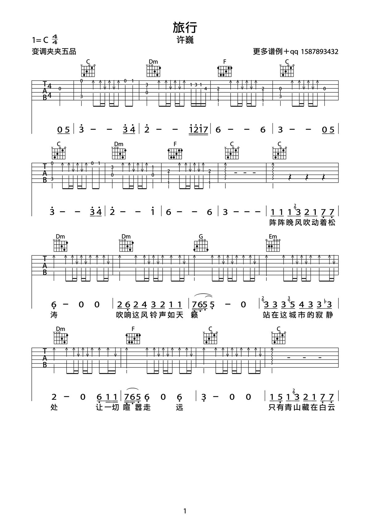 本文标题 《许巍《旅行吉他谱》(C调)》,网址:https://www.21qupu.com/guitar/35985.html