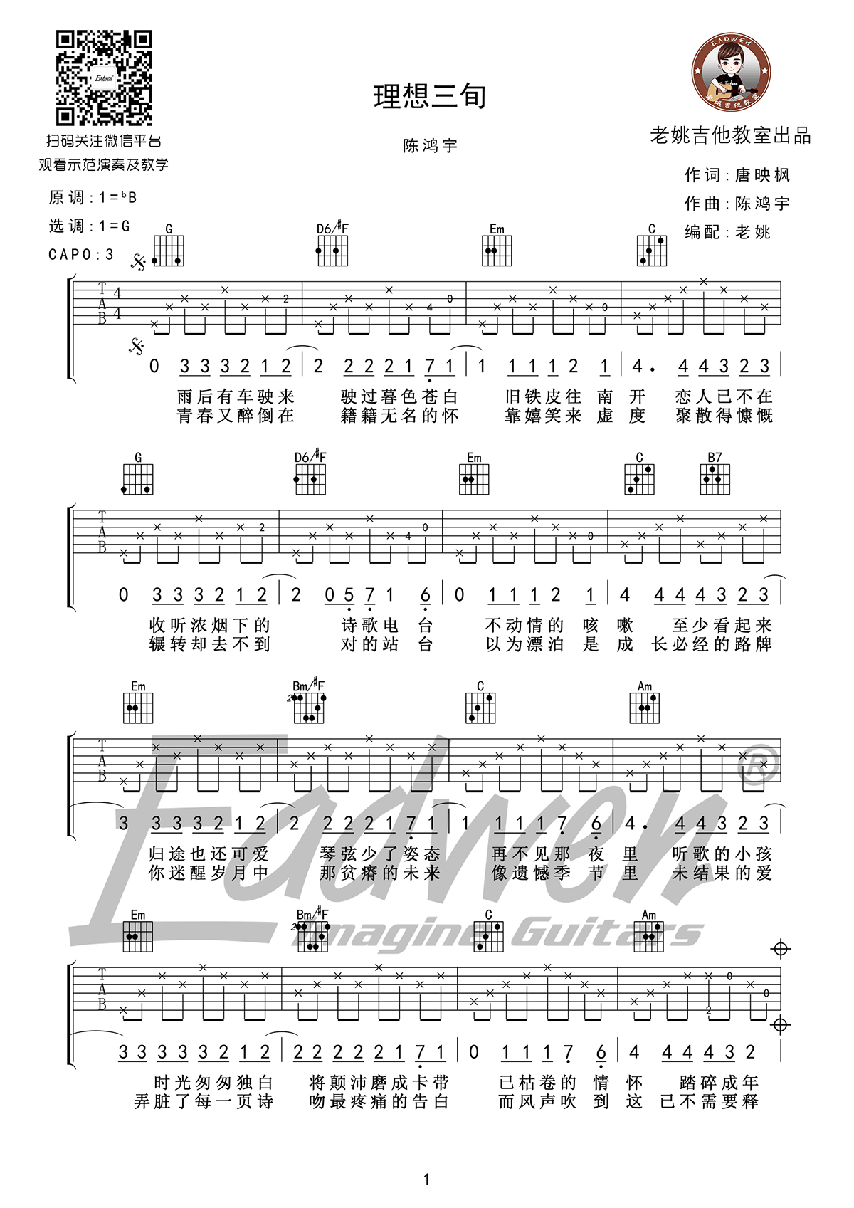 《陈鸿宇《理想三旬吉他谱》(G调)》内容来自于互联网,不能保证内容的准确性与完整性,仅供学习交流欣赏,请勿用于其它用途,内容版权归原作者及来源网站所有,如有侵犯到您的权益请来信告知,我们将及时删除。