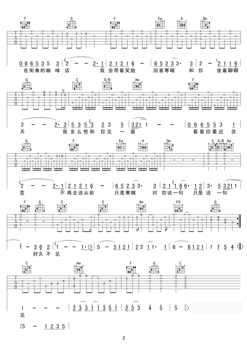 《陈奕迅《好久不见吉他谱》(C调)》内容来自于互联网,不能保证内容的准确性与完整性,仅供学习交流欣赏,请勿用于其它用途,内容版权归原作者及来源网站所有,如有侵犯到您的权益请来信告知,我们将及时删除。