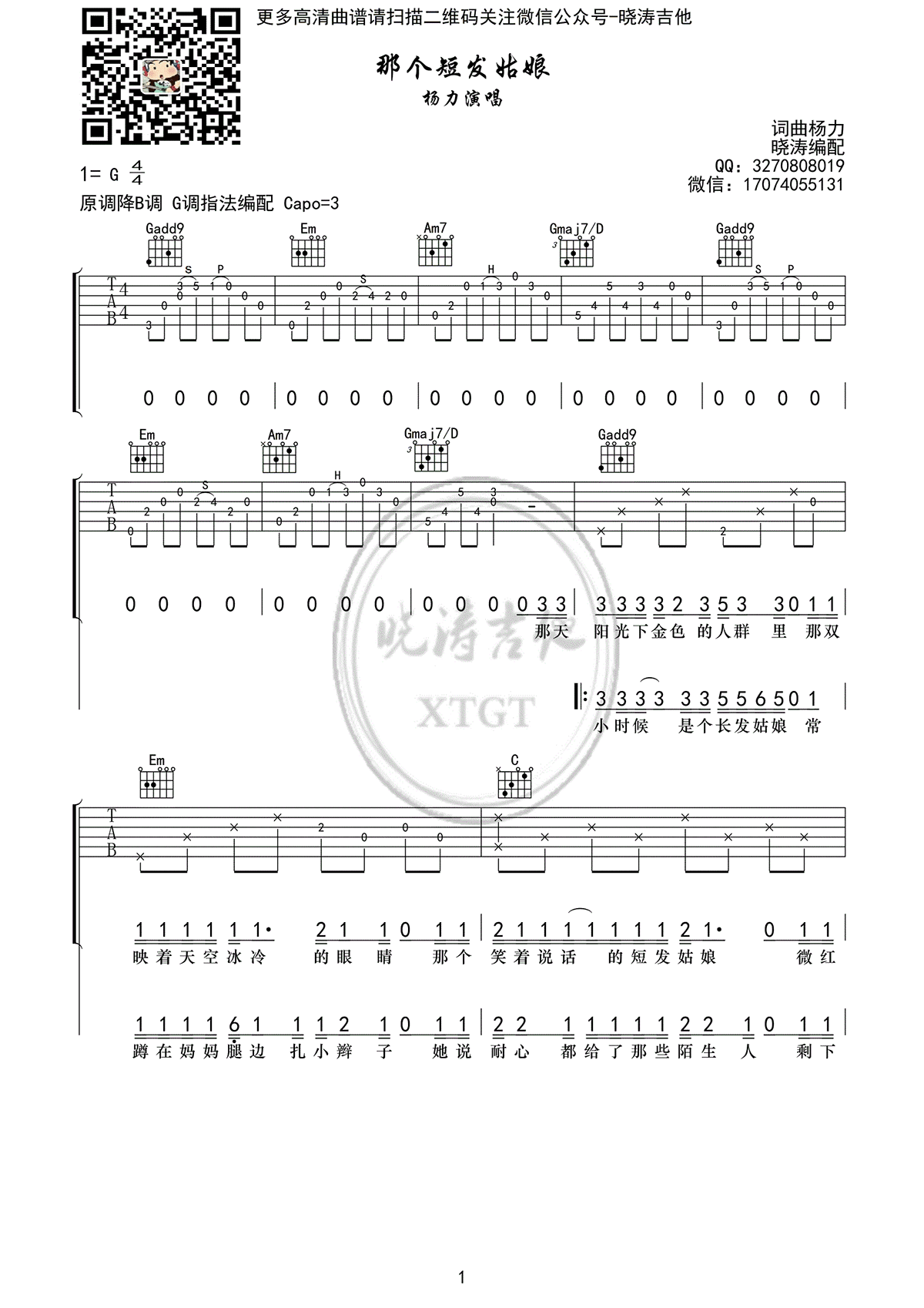 《《那个短发姑娘吉他谱》(G调)》内容来自于互联网,不能保证内容的准确性与完整性,仅供学习交流欣赏,请勿用于其它用途,内容版权归原作者及来源网站所有,如有侵犯到您的权益请来信告知,我们将及时删除。