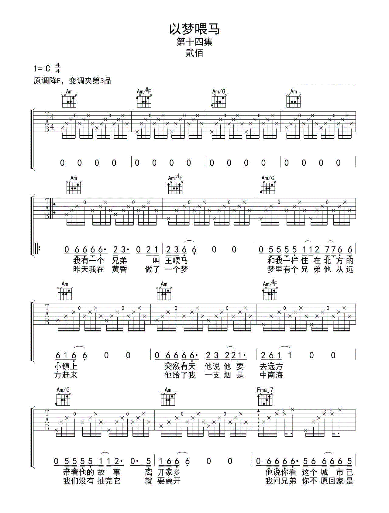 本文标题 《贰佰《以梦喂马 C调吉他谱》(C调)》,网址:https://www.21qupu.com/guitar/3607.html