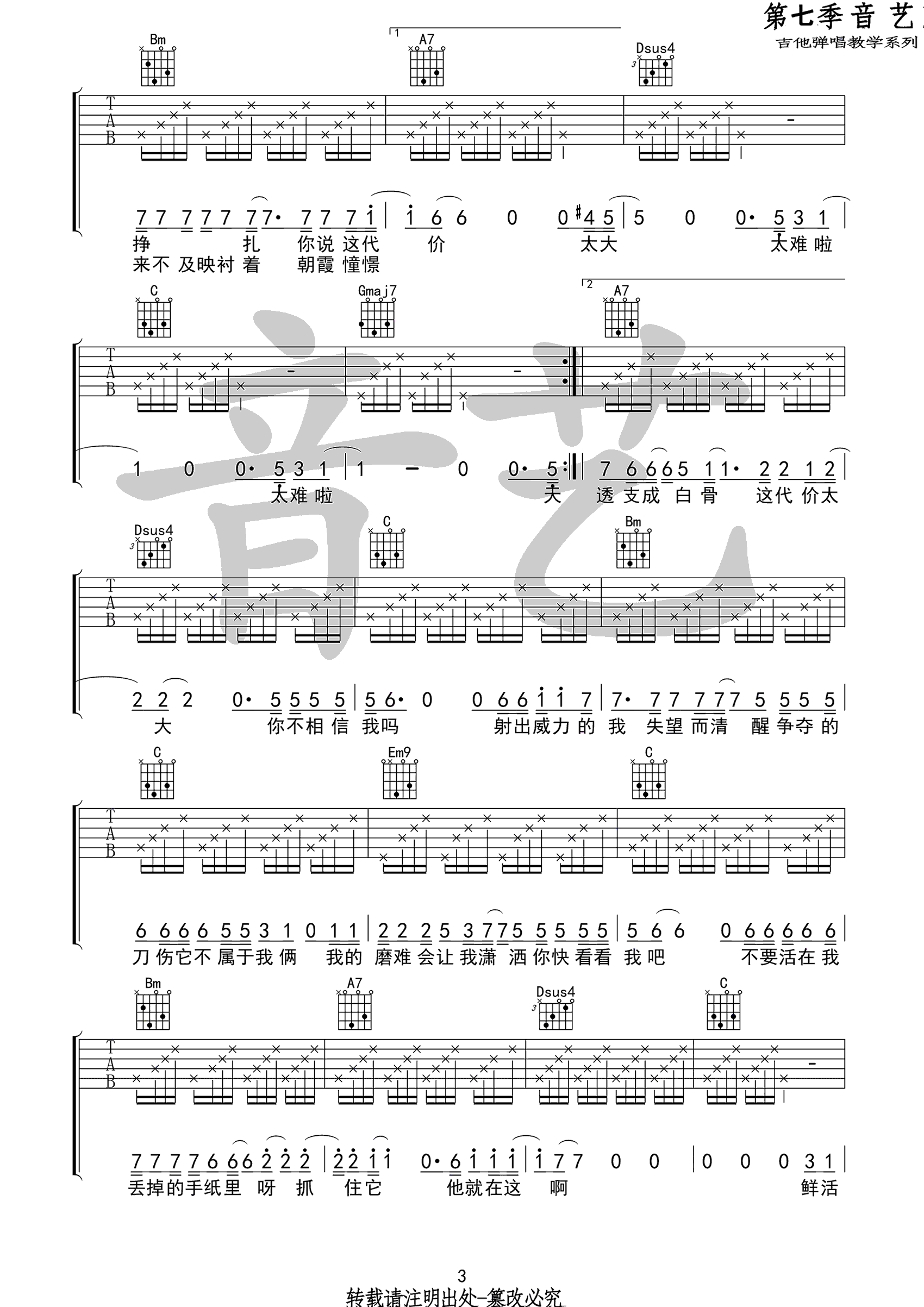 《马雨阳《鲜活吉他谱》(G调)》内容来自于互联网,不能保证内容的准确性与完整性,仅供学习交流欣赏,请勿用于其它用途,内容版权归原作者及来源网站所有,如有侵犯到您的权益请来信告知,我们将及时删除。
