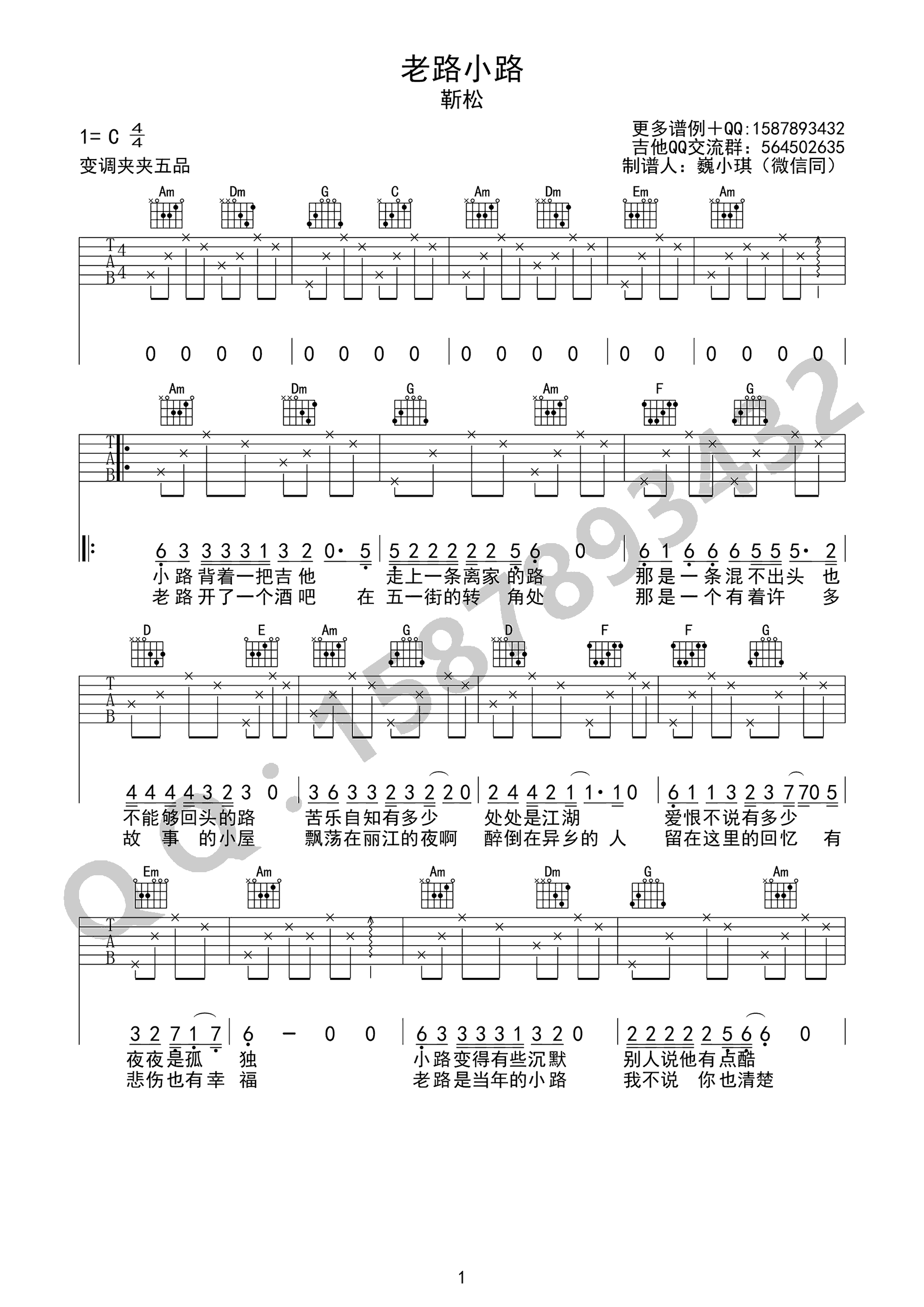 《小琪《老路小路吉他谱》(C调)》内容来自于互联网,不能保证内容的准确性与完整性,仅供学习交流欣赏,请勿用于其它用途,内容版权归原作者及来源网站所有,如有侵犯到您的权益请来信告知,我们将及时删除。