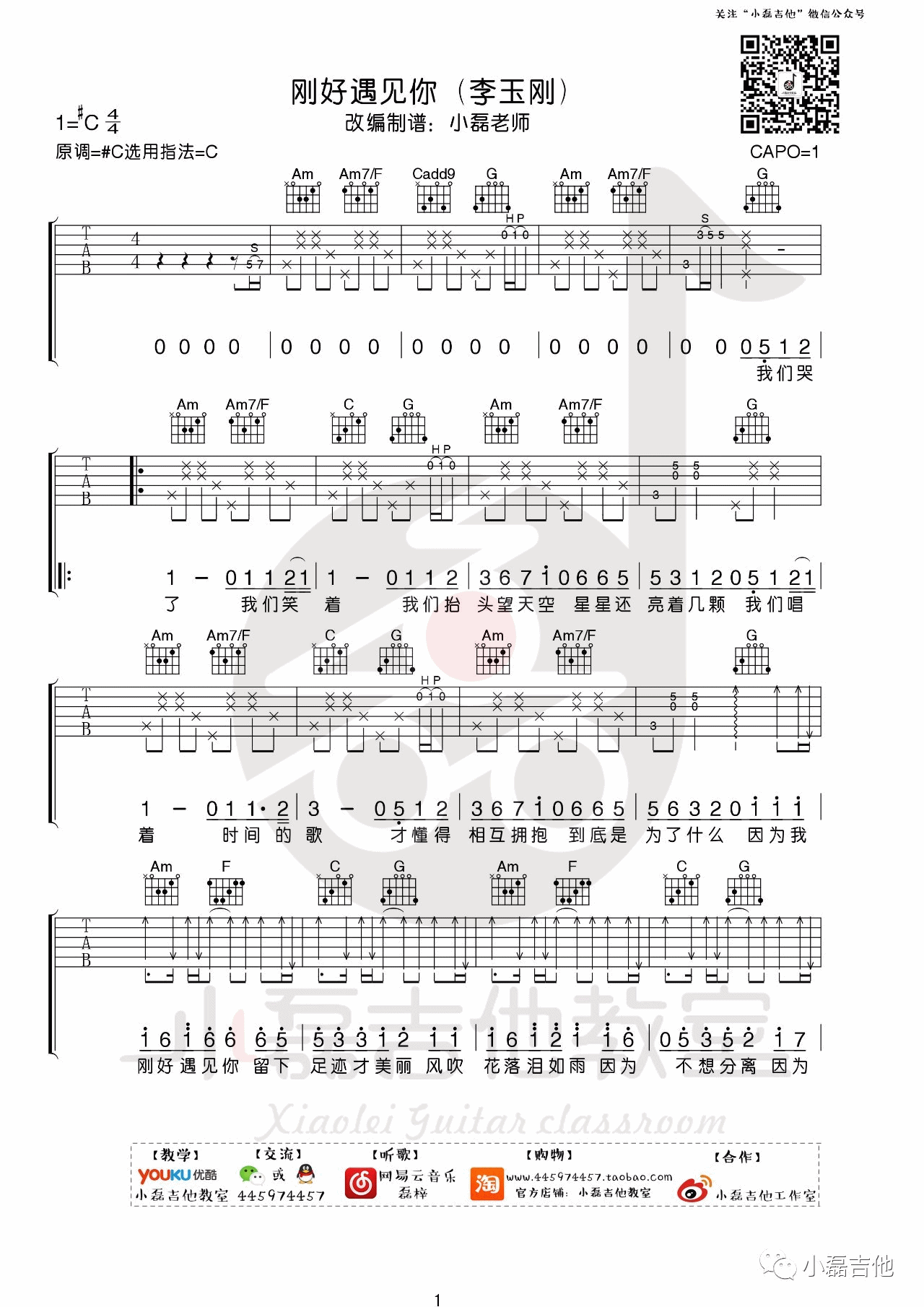 这首由李玉刚演唱、高进创作的《刚好遇见你》吉他谱是原调#C的六线谱,配有三张高清图片。谱子与原曲相似,尤其后段的扫弦部分独具特色。感谢小磊老师提供的视频演示和编配,这将为学习者带来不少启发。推荐分享《刚好遇见你》的吉他教学视频。让我们一起跟随示范,抱着吉他,弹