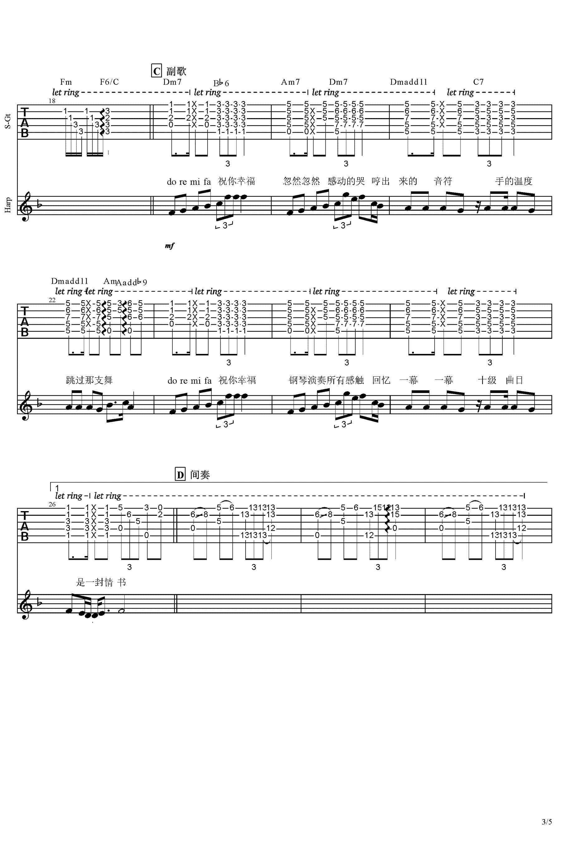 李荣浩的《祝你幸福》吉他谱,是由乐吧音乐馆编配的六线谱。这份谱子按照原版编曲,难度适中,可作为吉他民谣考级教程的8、9级曲目挑战。主歌部分完美还原原版弹法,若感低音不足,可在第一拍补弹低音(和弦已标明)。附有五张高清图片谱供参考分享。
