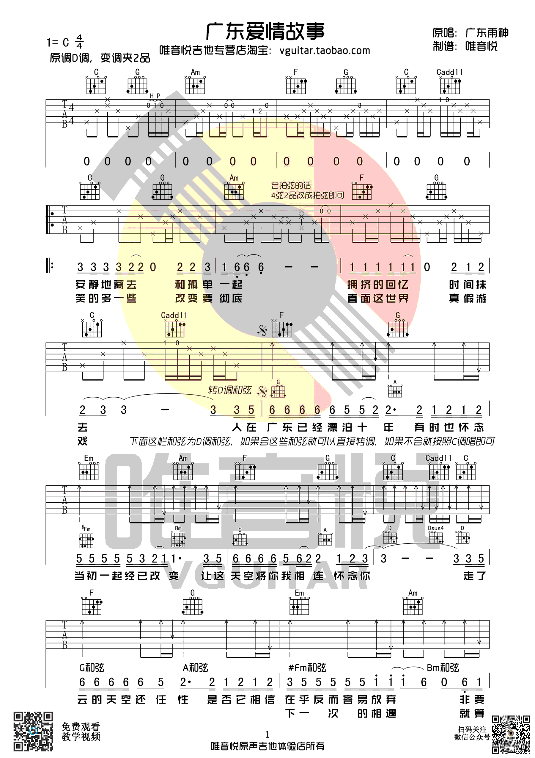 《广东雨神《广东爱情故事吉他谱》(C调)》内容来自于互联网,不能保证内容的准确性与完整性,仅供学习交流欣赏,请勿用于其它用途,内容版权归原作者及来源网站所有,如有侵犯到您的权益请来信告知,我们将及时删除。