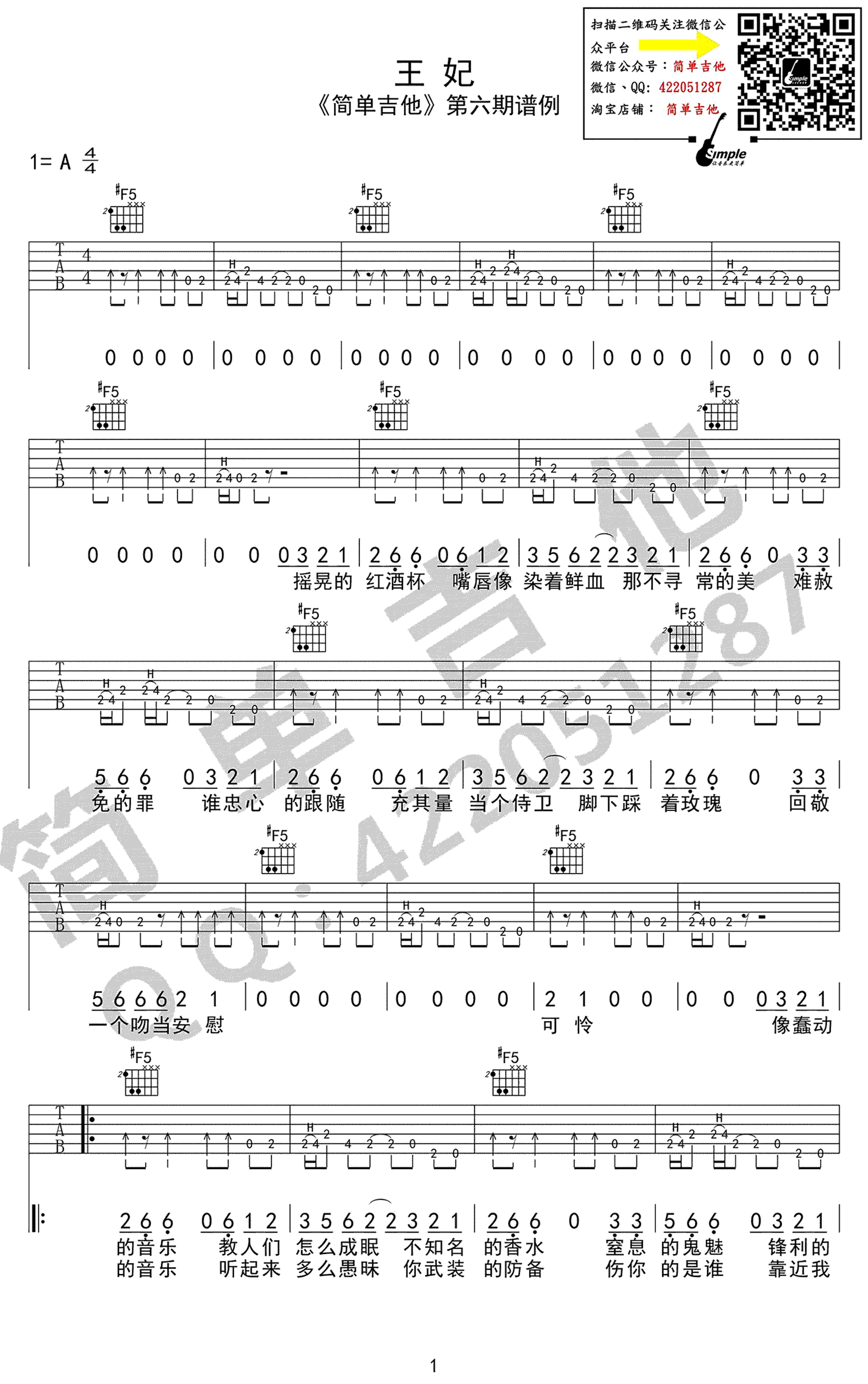 《萧敬腾《王妃吉他谱》(A调)》内容来自于互联网,不能保证内容的准确性与完整性,仅供学习交流欣赏,请勿用于其它用途,内容版权归原作者及来源网站所有,如有侵犯到您的权益请来信告知,我们将及时删除。