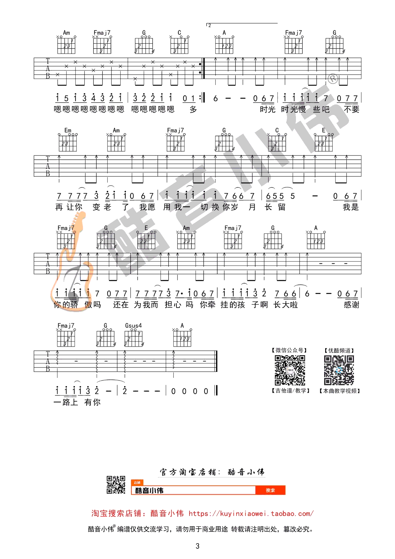 这首吉他谱简单易学,适合爱好者学习。由筷子兄弟演唱,以C调指法为基础,男生演唱需使用变调夹,女生则无需。曲谱清晰,包含六线谱,共三张图片。制作感谢酷音小伟编配和提供,由看谱啦上传,欢迎分享收藏。《父亲》一曲歌词真挚感人,旋律深沉动听。歌曲述说着中国老一辈父亲的