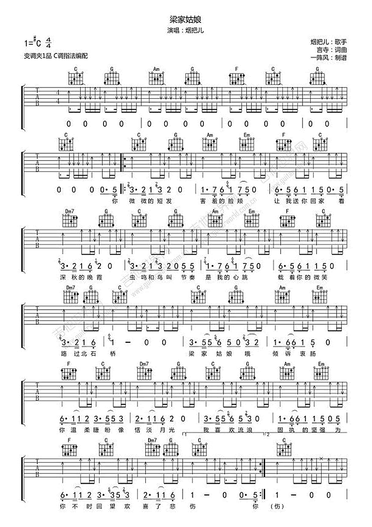 《烟把儿《梁家姑娘吉他谱》(C调)》内容来自于互联网,不能保证内容的准确性与完整性,仅供学习交流欣赏,请勿用于其它用途,内容版权归原作者及来源网站所有,如有侵犯到您的权益请来信告知,我们将及时删除。