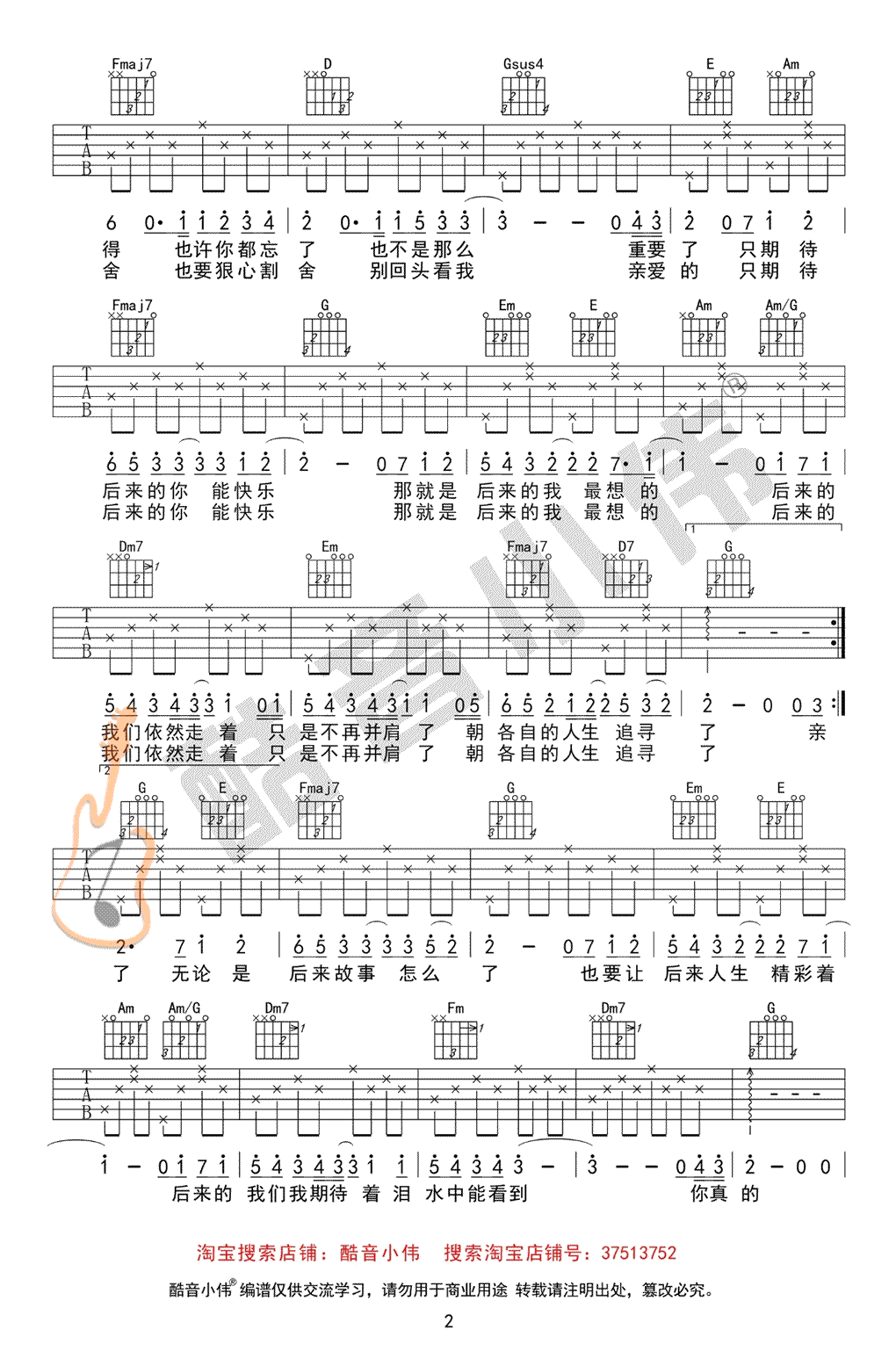 《五月天《后来的我们吉他谱》(C调)》内容来自于互联网,不能保证内容的准确性与完整性,仅供学习交流欣赏,请勿用于其它用途,内容版权归原作者及来源网站所有,如有侵犯到您的权益请来信告知,我们将及时删除。
