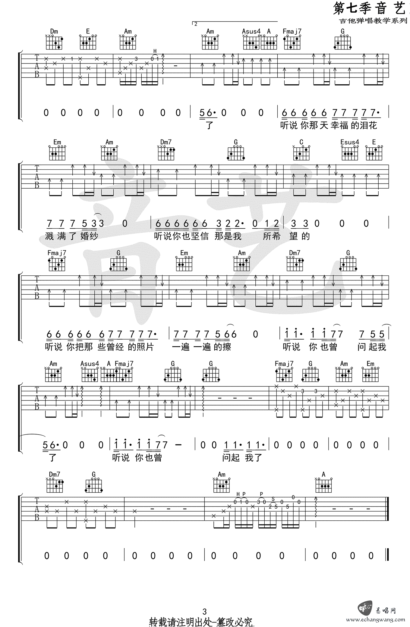 《丛铭君《丛铭君 听说吉他谱》(C调)》内容来自于互联网,不能保证内容的准确性与完整性,仅供学习交流欣赏,请勿用于其它用途,内容版权归原作者及来源网站所有,如有侵犯到您的权益请来信告知,我们将及时删除。