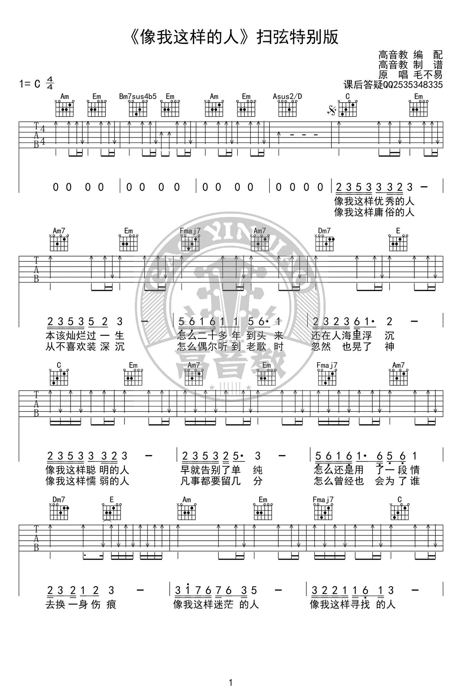 《毛不易《像我这样的人吉他谱》(C调)》内容来自于互联网,不能保证内容的准确性与完整性,仅供学习交流欣赏,请勿用于其它用途,内容版权归原作者及来源网站所有,如有侵犯到您的权益请来信告知,我们将及时删除。