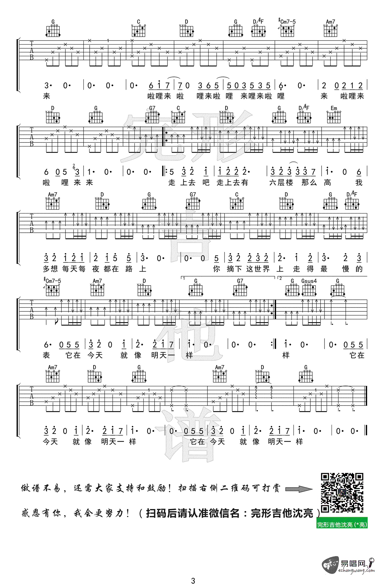 《宋冬野《六层楼吉他谱》(G调)》内容来自于互联网,不能保证内容的准确性与完整性,仅供学习交流欣赏,请勿用于其它用途,内容版权归原作者及来源网站所有,如有侵犯到您的权益请来信告知,我们将及时删除。