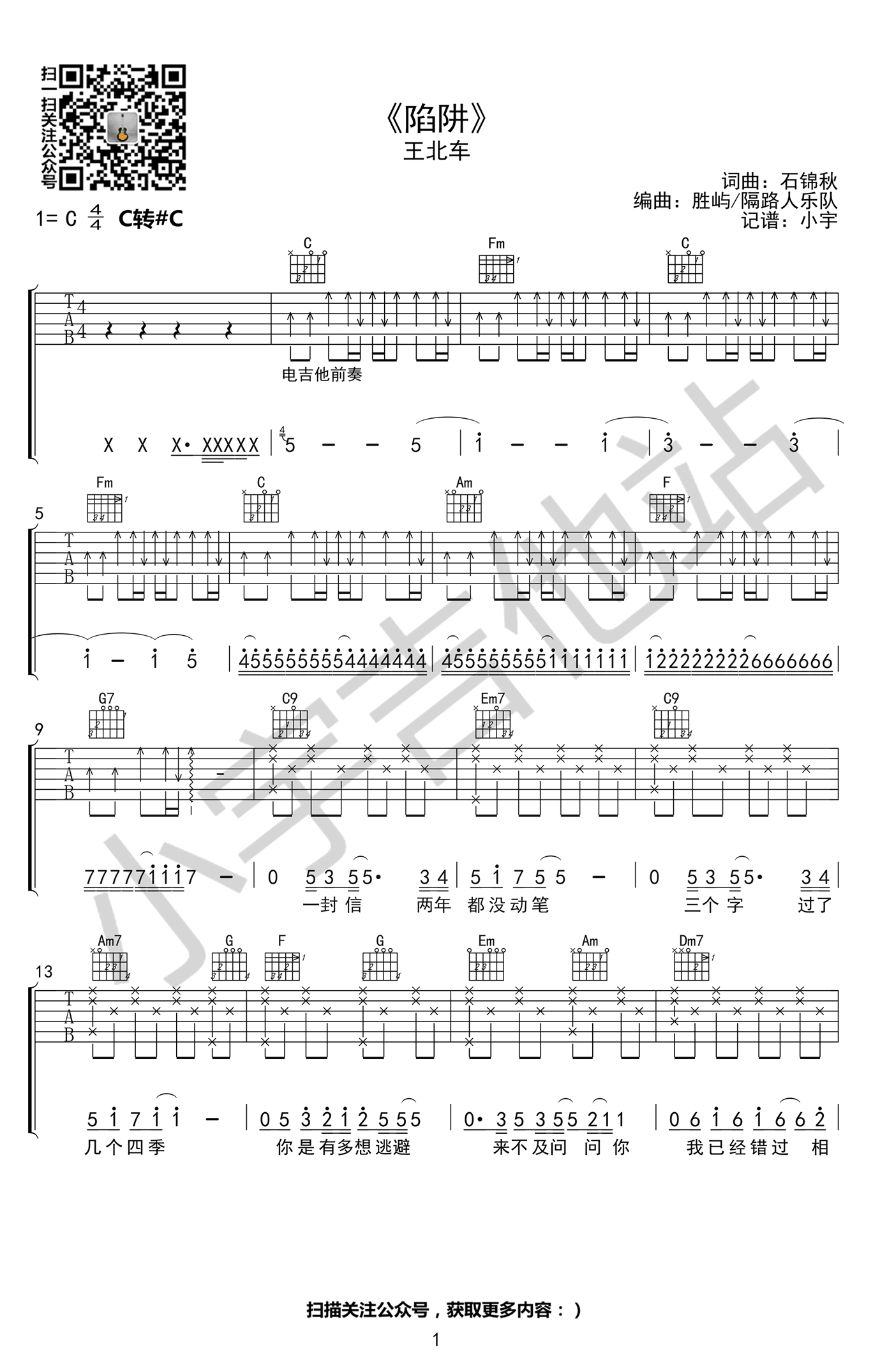 《王北车《陷阱吉他谱》(C调)》内容来自于互联网,不能保证内容的准确性与完整性,仅供学习交流欣赏,请勿用于其它用途,内容版权归原作者及来源网站所有,如有侵犯到您的权益请来信告知,我们将及时删除。