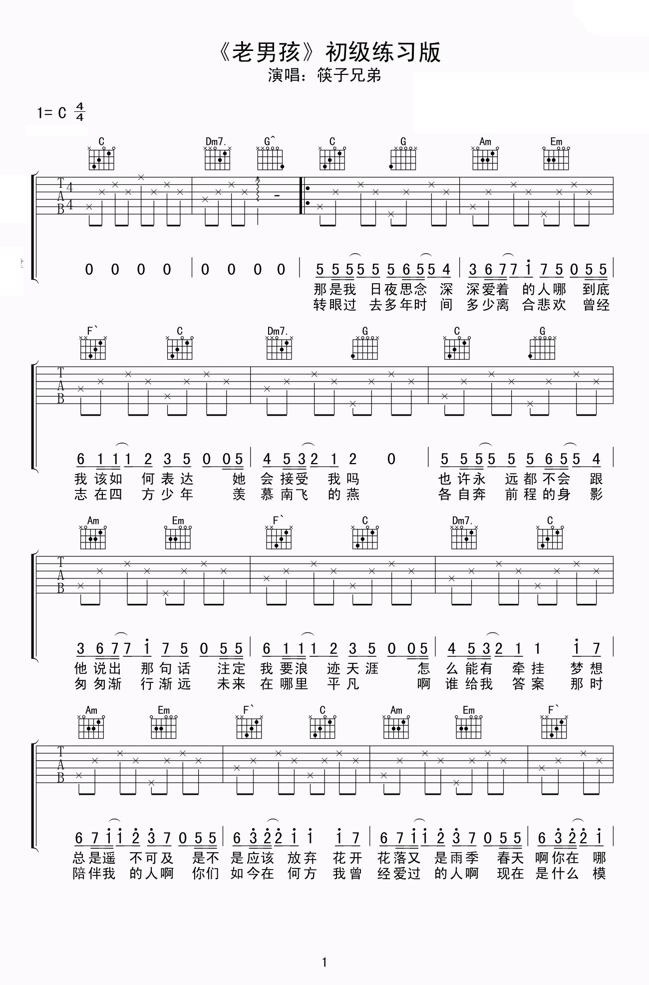 《筷子兄弟《老男孩吉他谱》(C调)》内容来自于互联网,不能保证内容的准确性与完整性,仅供学习交流欣赏,请勿用于其它用途,内容版权归原作者及来源网站所有,如有侵犯到您的权益请来信告知,我们将及时删除。