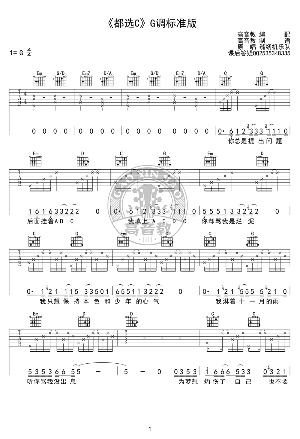 《缝纫机乐队《都选C吉他谱》(G调)》内容来自于互联网,不能保证内容的准确性与完整性,仅供学习交流欣赏,请勿用于其它用途,内容版权归原作者及来源网站所有,如有侵犯到您的权益请来信告知,我们将及时删除。